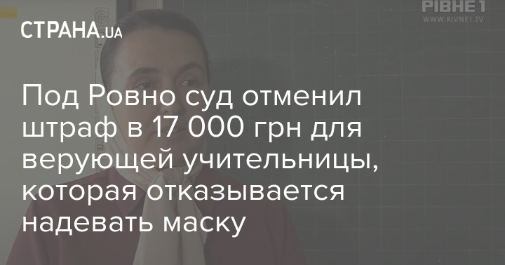 Осенью прошлого года Кузнецовский городской суд оштрафовал на 17 тысяч гривен учительницу лицея из Вараша, Ровенской области, которая категорически отказалась надевать маску во время проведения уроков из-за своих религиозных убеждений. Однако Ровенский апелляционный суд отменил штраф.