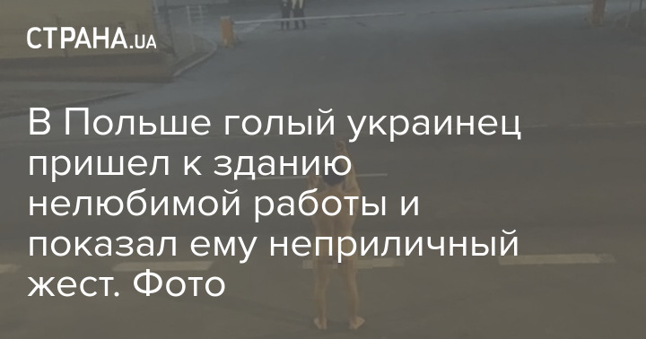 В Польше голый украинец пришел к зданию нелюбимой работы и показал ему неприличный жест. Фото