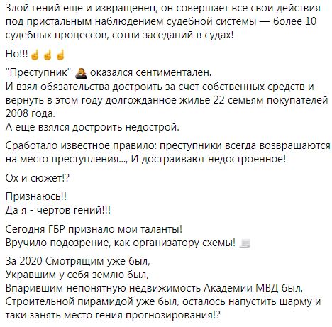 В 2016 году, после извещения об очередном новом владельце долга, поступило предложение о его выкупе. Это сделали новые инвесторы. После этого началось достройка дома, компания урегулировала вопросы с покупателями квартир и со сложной процедурой смены должников. Строительство ЖК возобновилось, рассказывает Ваврыш.