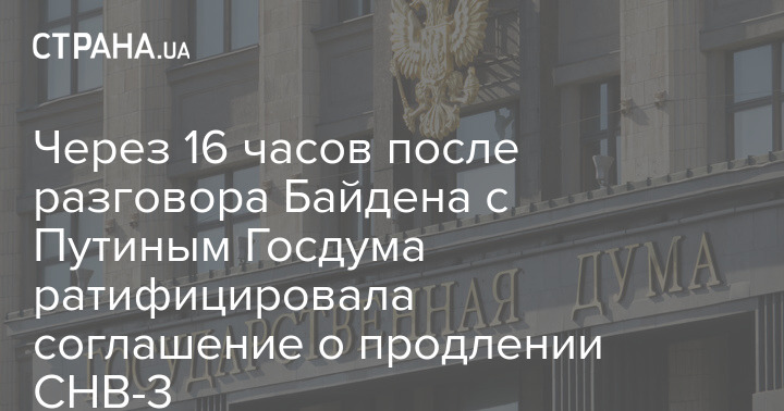 Через 16 часов после разговора Байдена с Путиным Госдума ратифицировала соглашение о продлении СНВ-3