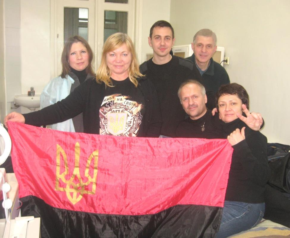 На ее странице в "Фейсбуке" много фотографий, где она позирует с красно-черным флагом националистов.