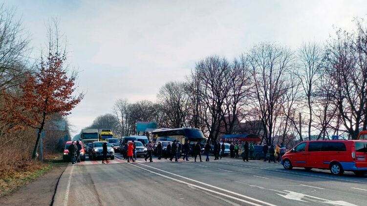 В Черновицкой области участники тарифных протестов перекрыли дорогу автомобилям. Фото
