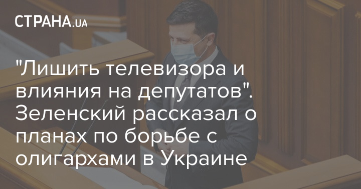 "Избавление от олигархов достигается двумя путями: лишить их возможности иметь "телевизор", ту или иную медиаплощадку, и лишить их возможности влиять на депутатов", - сказал Владимир Зеленский.