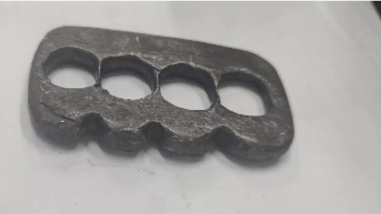 В карточке лота в системе электронных торгов арестованным имуществом (СЕТАМ) указано, что металлический предмет с четырьмя отверстиями, который является кастетом, изготовлен из свинца самодельным способом и был в употреблении.