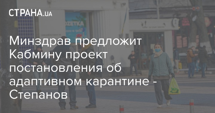 Министерство здравоохранения в ближайшее время вынесет на заседание Кабинета министров проект постановления о введении в Украине адаптивного карантина, в рамках которого регионы будут поделены на зоны ограничений в зависимости от эпидемиологической ситуации в них.
