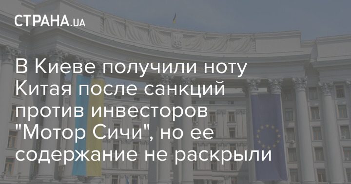 В Киеве получили ноту Китая после санкций против инвесторов "Мотор Сичи", но ее содержание не раскрыли