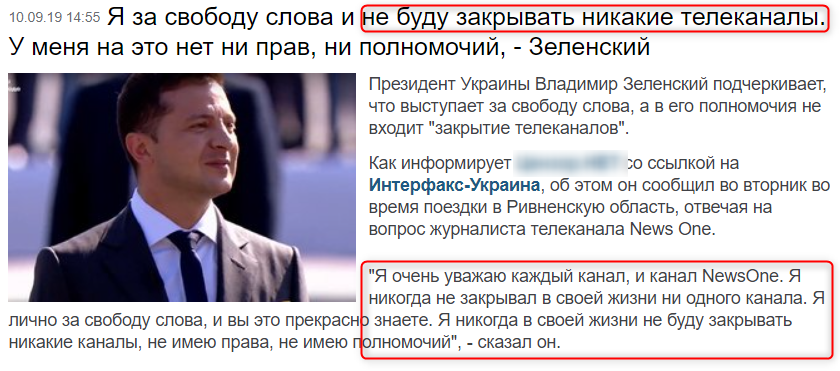 00:01  В Сети напоминают, что в 2019 году Зеленский обещал не закрывать телеканалы. В частности, NewsOne.