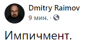 00:46  Политтехнолог Дмитрий Раимов призвал к импичменту Зеленского.