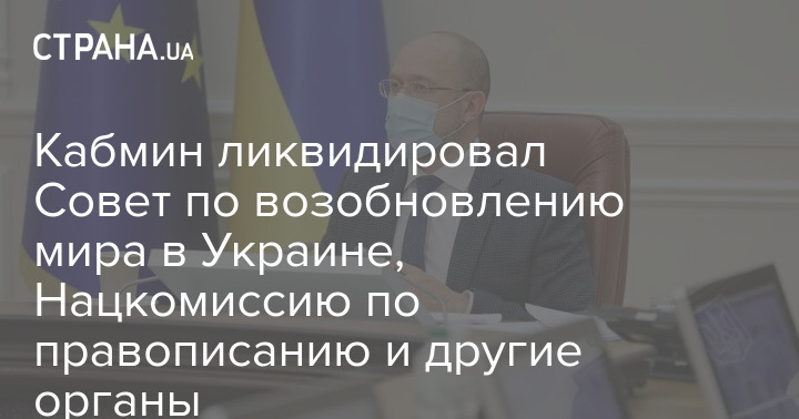 На заседании в среду, 3 февраля, Кабинет министров ликвидировал Совет по возобновлению и строительству мира в Украине, Нацкомиссию по вопросам правописания, Комиссию по вопросам популяризации Украины в мире и 30 других вспомогательных органов.