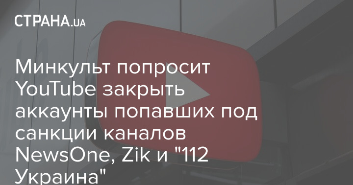 Минкульт попросит YouTube закрыть аккаунты попавших под санкции каналов NewsOne, Zik и "112 Украина"
