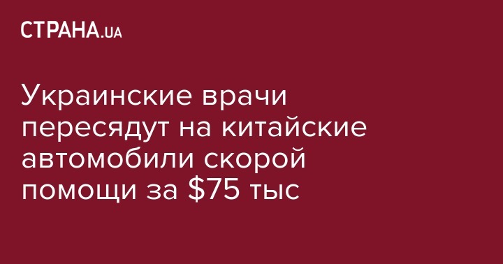 Китай собирается предоставить Украине 50 автомобилей скорой помощи в соответствии с соглашением, которое было подписано  Кабмином. Общая стоимость укомплектованных автомобилей должна составить порядка $3,7 млн. Об этом сообщает УНН.