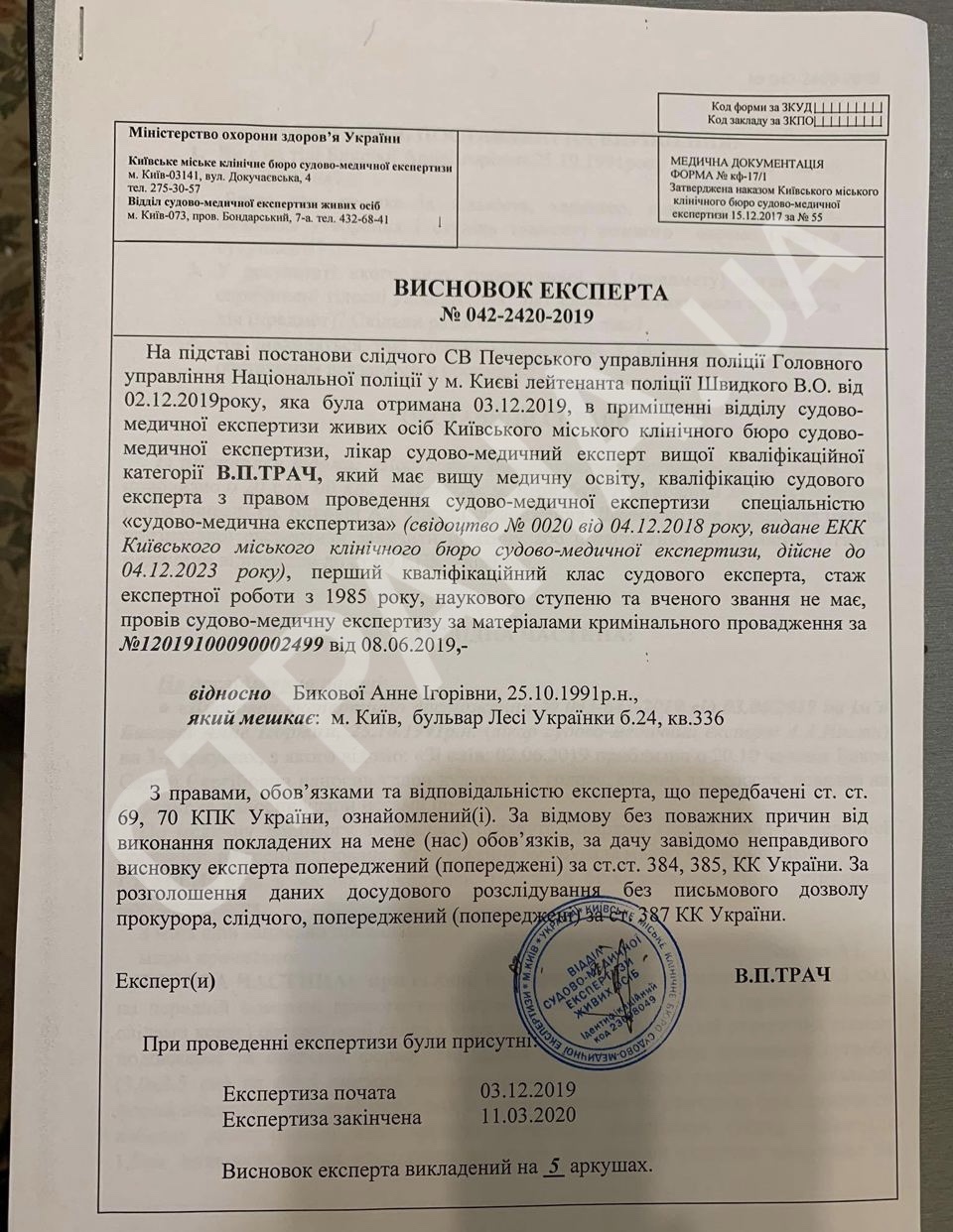 Медицинское заключение о травмах средней тяжести, которые получила Анне Быкова