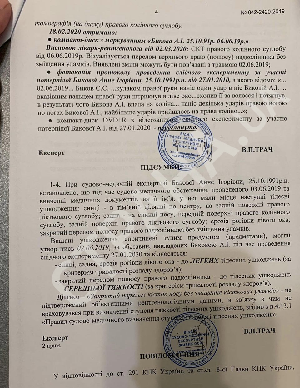 "Кстати, Сергей никогда этот факт не опровергал. Так длится по сей день. Ни одной копейки дополнительных расходов, ни одного подарка, фрукта он сыну не предоставил. При том что с октября 2018 года до июня 2019 года, когда произошло избиение, Сергей примерно два раза в месяц виделся с ребенком и забирал его на 1-2 дня. Со дня избиения Сергей пропал из жизни ребенка и уже никогда не звонил, не приезжал. Ребенка содержу я и мой нынешний супруг, также мои родители. Сейчас я отсудила у Сергея уже не 850 грн, а 1000 грн алиментов. Так как имущество на него никакое не записано, это максимум, который мне может обеспечить суд. Кстати, на суде по алиментам Сергей насмехательски сказал, что не виноват в том, что у нас такое несовершенное законодательство", - уточнила Анне Быкова.