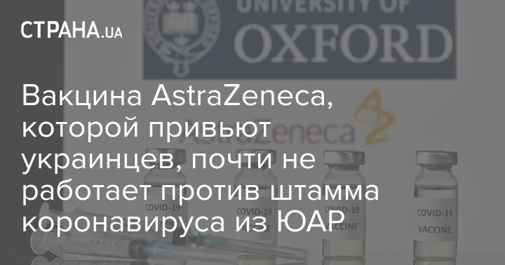 Вакцина производства компании AstraZeneca и Оксфордского университета, которая станет одним из основных препаратов для иммунизации украинцев от коронавируса, может защитить от южноафриканского штамма всего в 10% случаев.