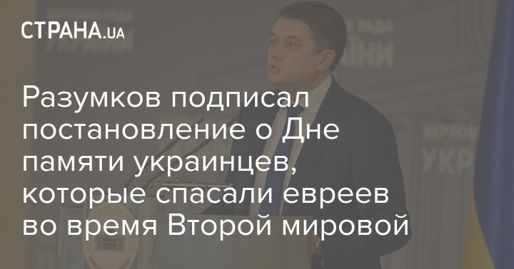 Во вторник, 9 февраля, спикер парламента Дмитрий Разумков подписал постановление об установлении 14 мая Днем памяти украинцев, которые спасали евреев во время Второй мировой войны.