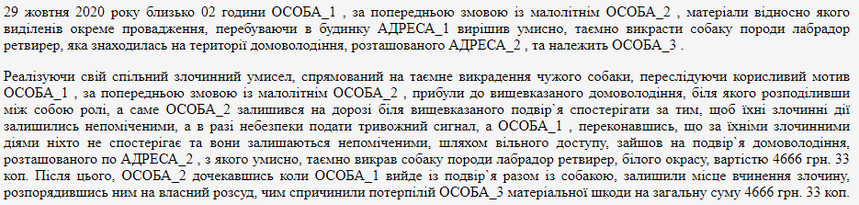 Парни распределили между собой роли: младший остался караулить на дороге, чтобы в случае опасности подать тревожный сигнал, старший пошел во двор и украл белого лабрадора, который стоит более 4,5 тыс. грн.