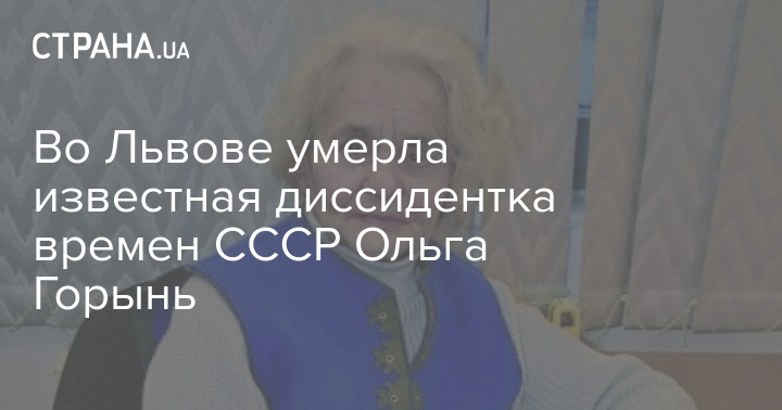 В возрасте 90 лет во Львове ушла из жизни известная диссидент, участница ОУН-УПА, жена Михаила Горыня (одного из основателей Украинской Хельсинской группы) - Ольга Горынь.