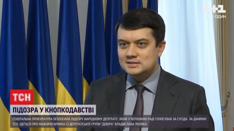 Спикер Верховной Рады Украины Дмитрий Разумков пояснил, что грозит мажоритарщику из группы "Доверие" Владиславу Поляку, которому выдвинули подозрение в кнопкодавстве. По словам председателя парламента, нардеп потеряет полномочия, если суд признает его виновным.