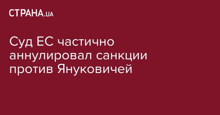 В четверг, 15 сентября, общий суд Европейского Союза признал частично неправомочным решение ЕС о заморозке активов Виктора Януковича, его сына Александра и экс-главы АП Андрея Клюева. Об этом сообщает УНИАН.
