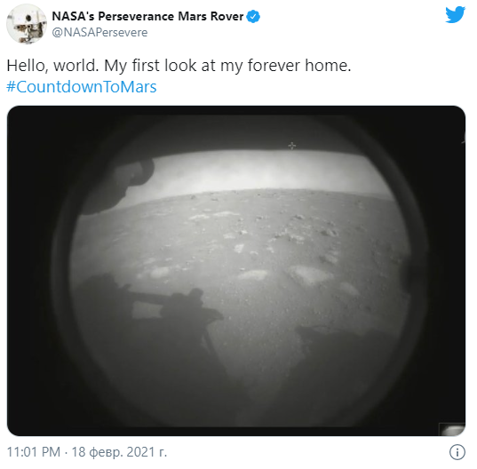 "Привет, мир. Первое, что я увидел в моем пристанище", - так подписали первый снимок Персеверенс с Марса.