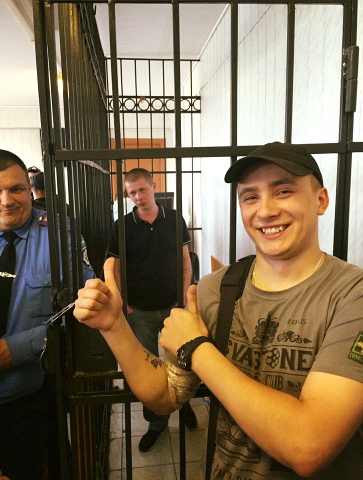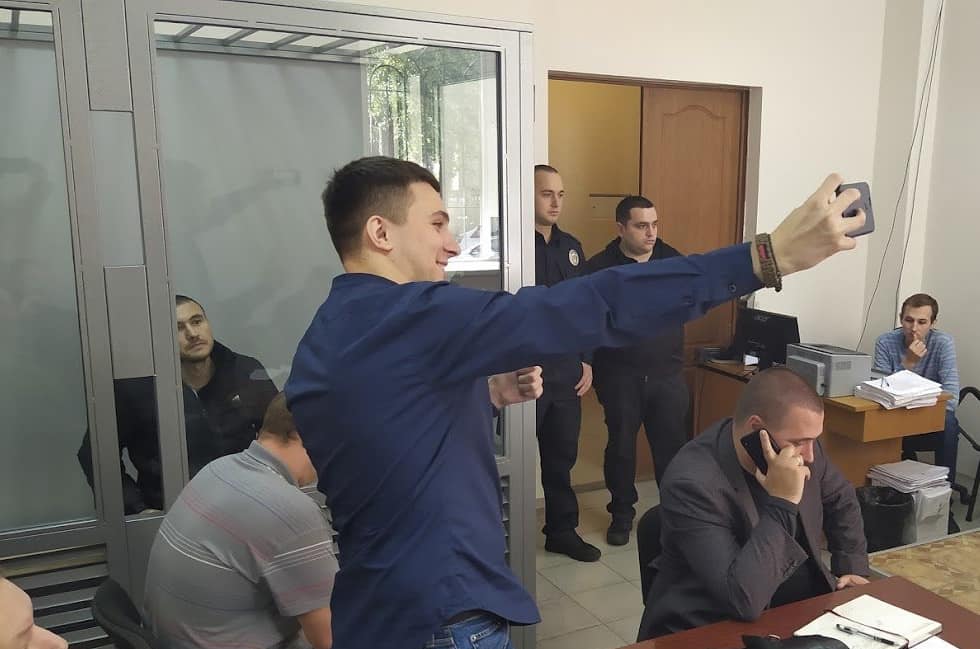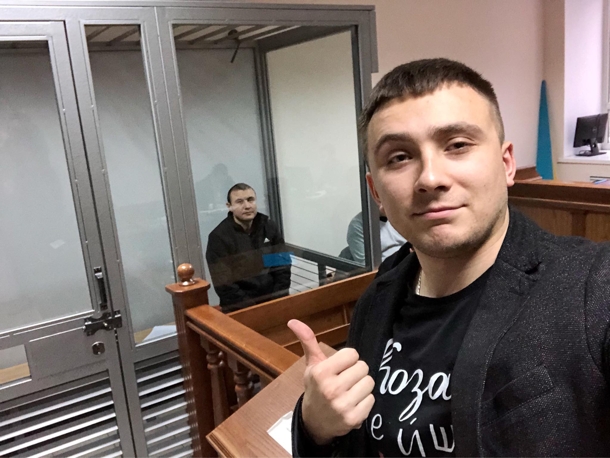 Фотографировался Сергей Стерненко в суде и на фоне Евгения Мефедова. Гражданина России, который жил в Одессе, куда приехал к своей девушке, и работал таксистом.