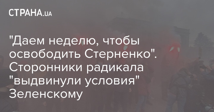 Митингующие у здания Офиса президента в поддержку арестованного Сергея Стерненко, которого засудили к 7 годам и конфискации половины имущества, дали президенту Украины Владимиру Зеленскому неделю на освобождение радикала, пригрозив сделать акции протеста бессрочными.