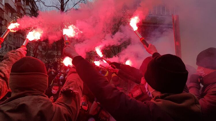 Сегодня же, казалось, на Банковую пришли другие люди - вели они себя относительно прилично, ничего не ломали и никого не били. Хотя под конец и устроили файер-шоу под стенами Офиса генпрокуратуры.