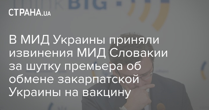 Министр иностранных дел Украины Дмитрий Кулеба отреагировал на извинение МИД Словакии за шутку премьера страны Матовича об обмене российской вакцины на украинское Закарпатье.