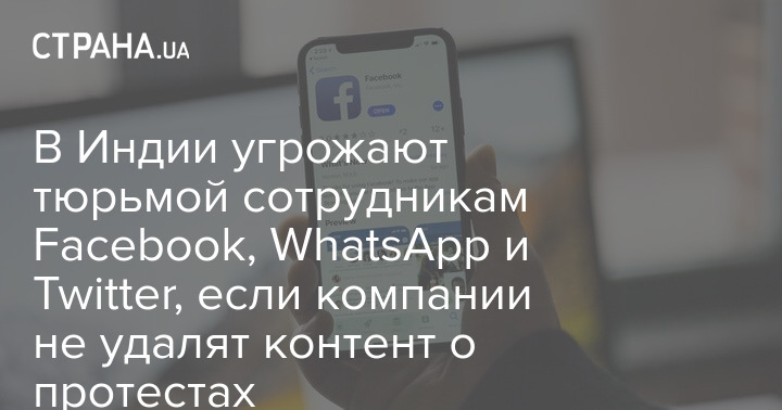 Правительство Индии пригрозило посадить в тюрьму сотрудников компании Facebook Inc, в частности ее подразделений WhatsApp и Twitter Inc. Угрозу воплотят, если работники не выполнят требования и не удалят данные, "подрывающие национальную безопасность". Речь идет об информации о протестах индийских фермеров, которая попала в мировые СМИ.