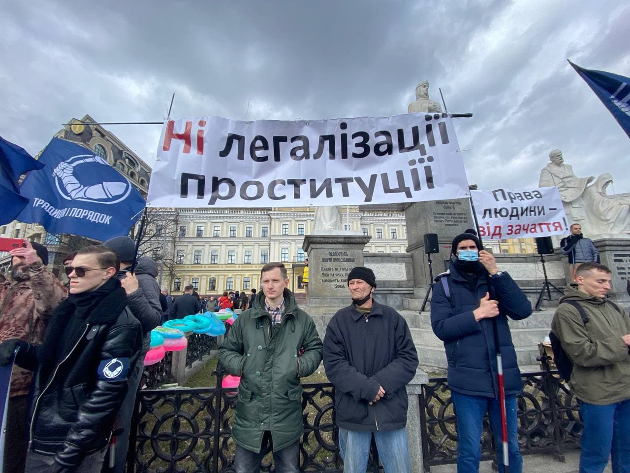 На акции националистов выступил священник, который заявил, что на женский марш пришли сатанисты.