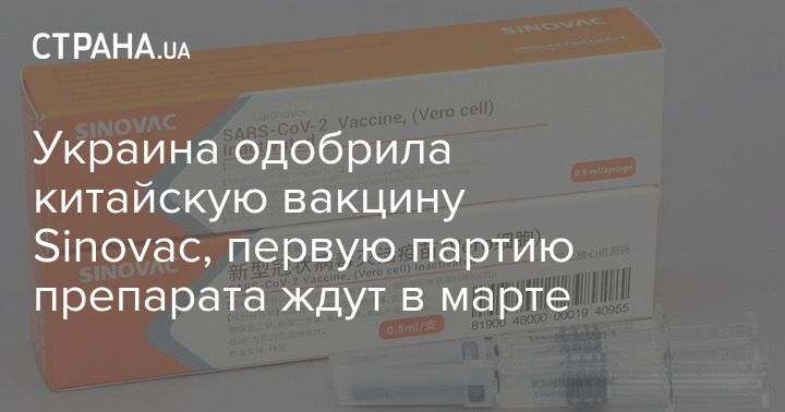 Украина одобрила применение китайской вакцины коронавируса, которую разработала китайская компания Sinovac. В марте ожидают поставку первой партии препарата.