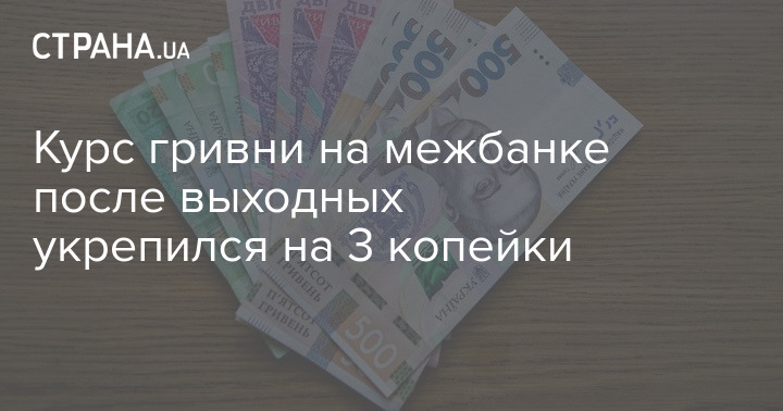 Курс гривни на межбанке после выходных укрепился на 3 копейки