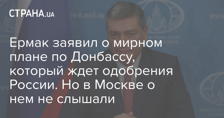 В России заявили, что ничего не знают о плане восстановления мира на Донбассе, который, по словам главы Офиса президента Андре Ермака, Украина разработала вместе с Францией и Германией и передала для одобрения РФ.