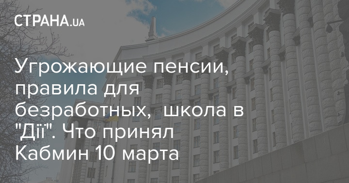 Угрожающие пенсии, правила для безработных, школа в "Дії". Что принял Кабмин 10 марта