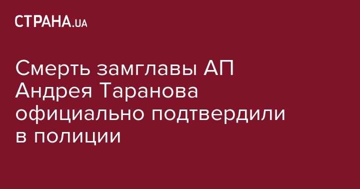 Информацию о смерти заместителя главы Администрации президента Украины Андрея Таранова подтвердил журналистам пресс-секретарь Нацполиции Ярослав Тракало, передает "УП".