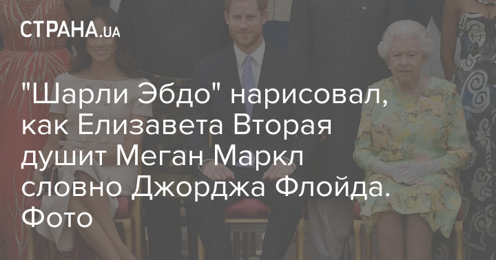 "Шарли Эбдо" нарисовал, как Елизавета Вторая душит Меган Маркл словно Джорджа Флойда. Фото