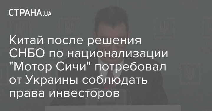"Пекин после заявления СНБО о национализации "Мотор Сич" потребовал от Украины соблюдения законных прав и интересов китайских инвесторов", - говорится в заявлении.