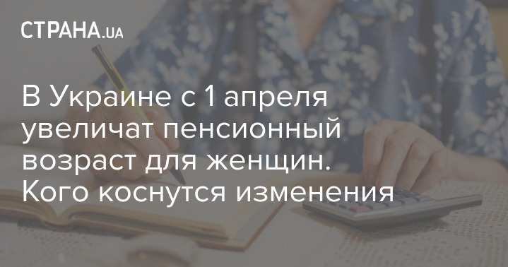 С 1 апреля 2020 года в Украине пенсионный возраст для женщин, родившихся после 1 апреля 1961 года будет повышен до 60 лет.