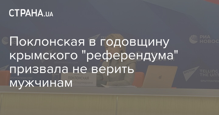 Во вторник, 16 марта, в день седьмой годовщины "референдума" о присоединении Крыма к России, депутат Государственной думы, в прошлом прокурор аннексированного полуострова Наталья Поклонская посоветовала не верить мужчинам.