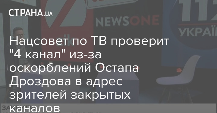 Нацсовет Украины по вопросам телевидения и радиовещания по обращению нардепа Максима Бужанского назначил внеплановую проверку "4 канала", в эфире которого телеведущий Остап Дроздов оскорбил зрителей закрытых властями оппозиционных телеканалов "112", NewsOne и Zik.