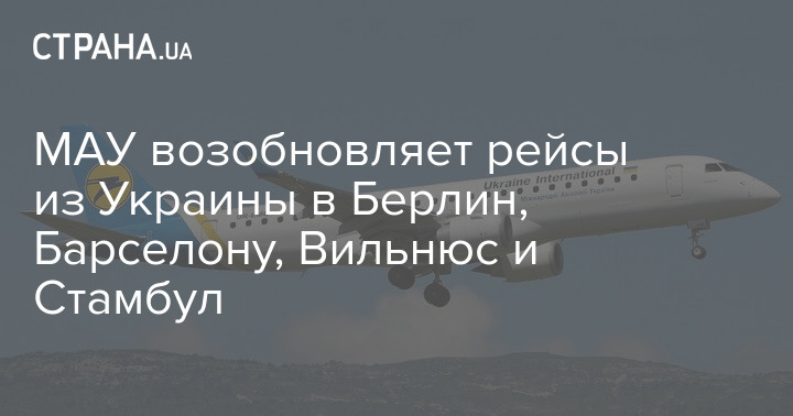 Авиакомпания "Международные авиалинии Украины", которая ранее запустила маршрут "в никуда", возобновляет рейсы в Берлин, Вильнюс, Барселону и Стамбул, приостановленные из-за пандемии коронавирусной болезни.
