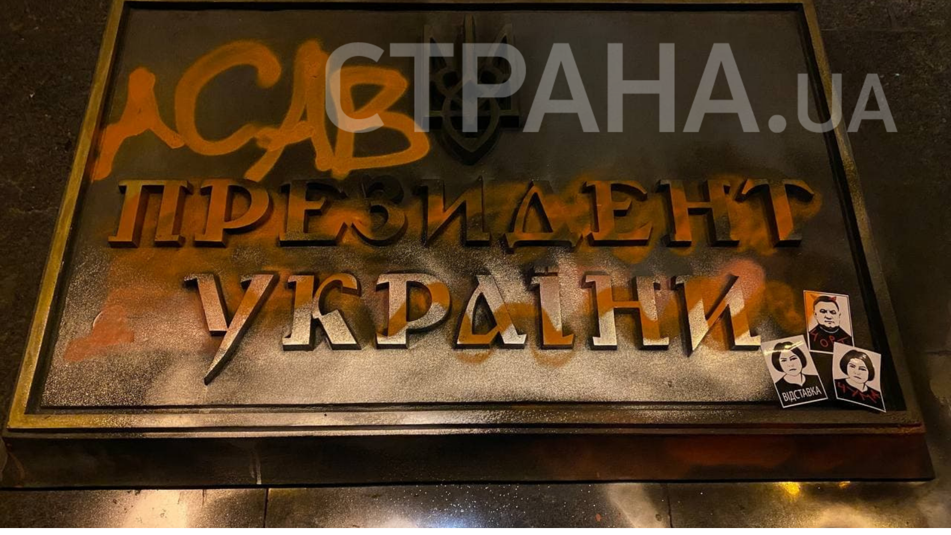 19:50 Стены и двери ОП обрисовали надписями "Волю Стерненко". Акция одномоментно стала радикальной.