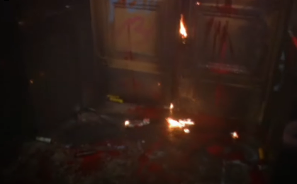 20:11 Разбитые стекла входных дверей Офиса президента Украины.