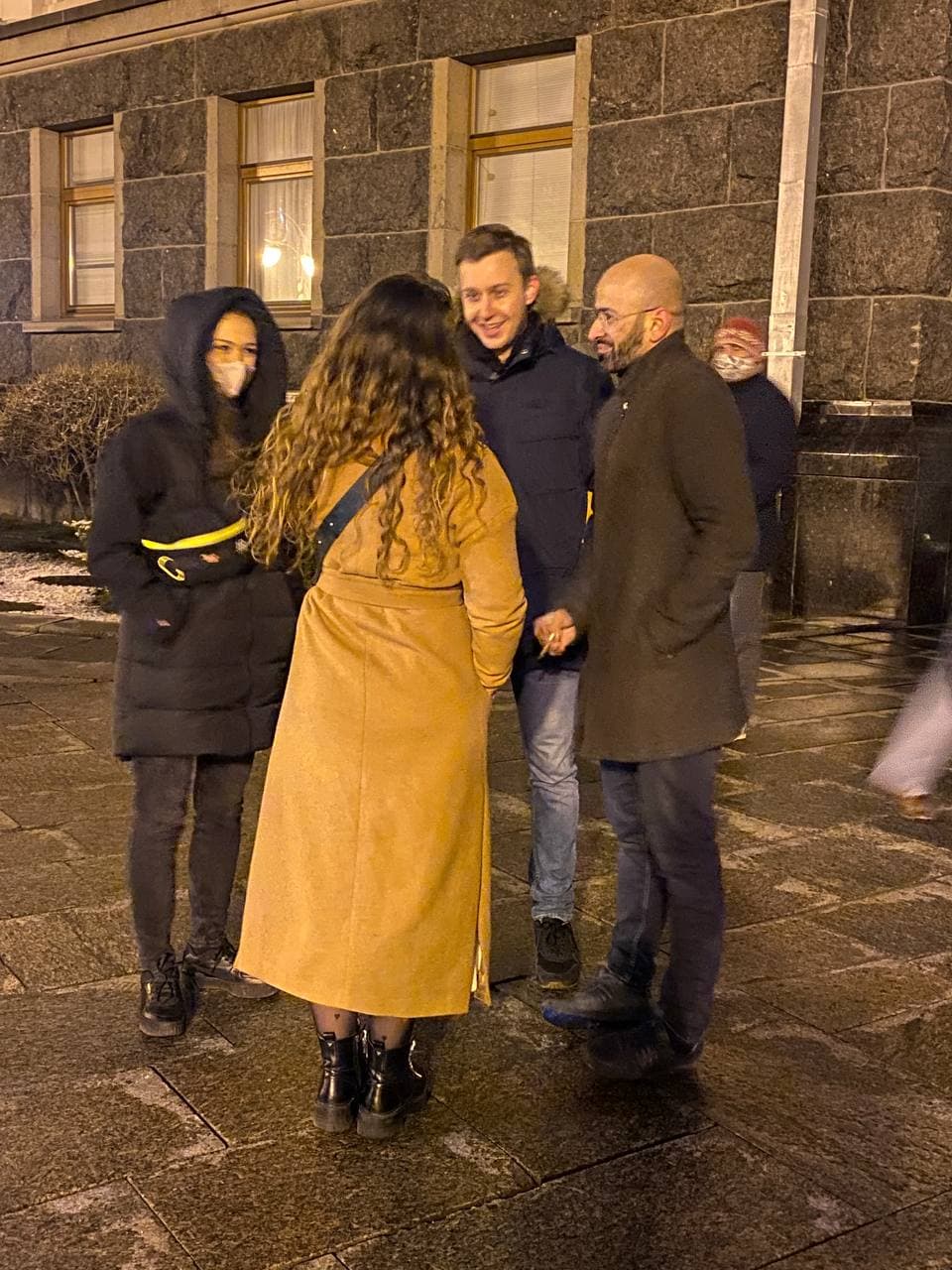 19:20 На акцию протеста приехал адвокат Стерненко Маси Найем и депутат от партии Голос Роман Лозинский.
