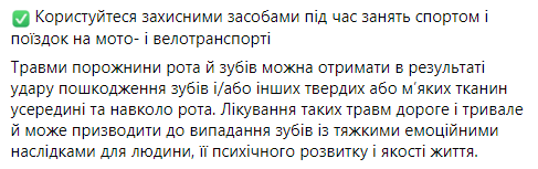 "Травмы полости рта и зубов можно получить в результате удара повреждения зубов и/или других твердых или мягких тканей внутри и вокруг рта. Лечение таких травм дорогое и длительное и может приводить к выпадению зубов с тяжелыми эмоциональными последствиями для человека, его психического развития и качества жизни", - добавили в ЦОЗ.