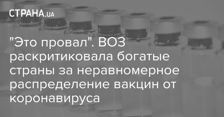 "Это провал". ВОЗ раскритиковала богатые страны за неравномерное распределение вакцин от коронавируса