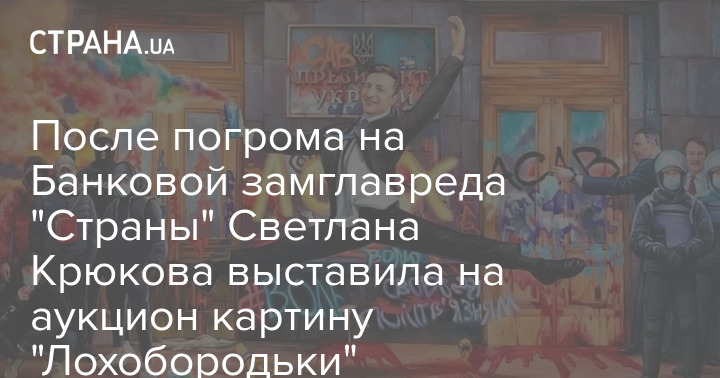 После субботнего погрома, который 20 марта сторонники радикала Сергея Стерненко устроили на Банковой, заместитель главного редактора "Страны" Светлана Крюкова выставила на аукцион новую картину под названием "Лохобородьки".