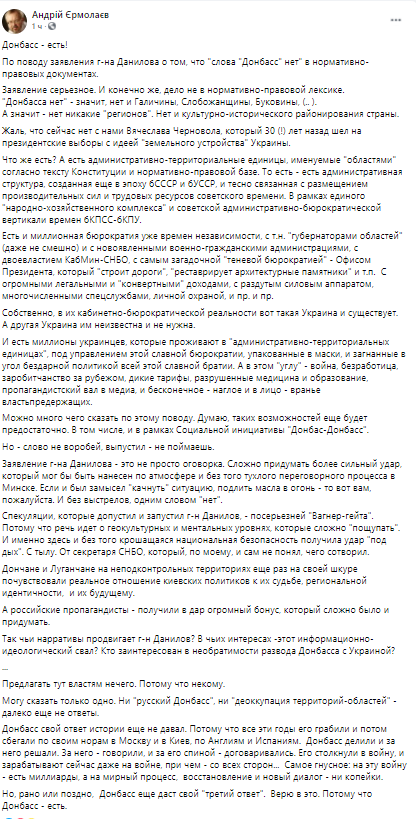 Заявление серьезное. И, конечно же, дело не в нормативно-правовой лексике. "Донбасса нет" - значит, нет и Галичины, Слобожанщины, Буковины, (.. ).