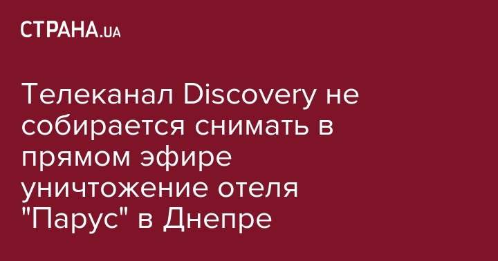 Телеканал Discovery не собирается снимать в прямом эфире уничтожение отеля "Парус" в Днепре