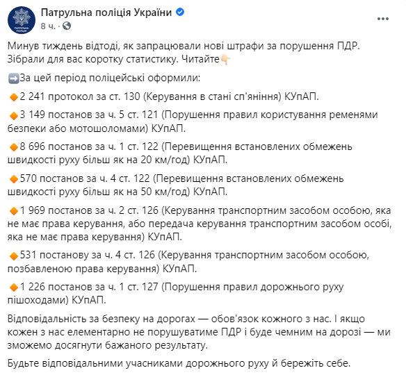 Скриншот: facebook.com/patrolpolice.gov.ua
